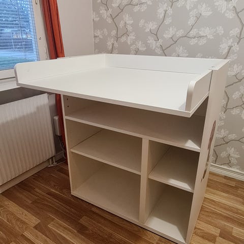 Skötbord med 3 lådor som går att göra om till skrivbord i ett senare skede.
