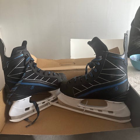 Revolution ishockeyskridskor för barn i storlek 32. Skridskorna är utformade för ishockey med en svart och blå design. Passar barn som behöver storlek 32 i skridskor.