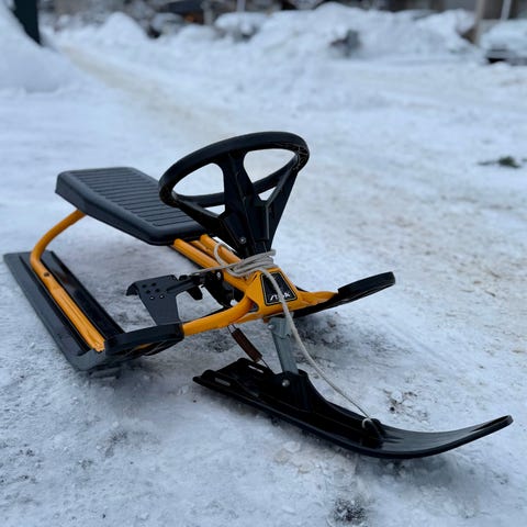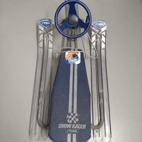 Stiga Classic SnowRacer i blått med svart ratt och sits. I metall med medar, ratt och sits i plast. Med broms. Vissa rostangrepp där färgen lossnat, men fungerar utmärkt. Se bilder. Barnen använder den tyvärr inte längre. Gått i generationer. Hämtas i Näsby park, Täby.
