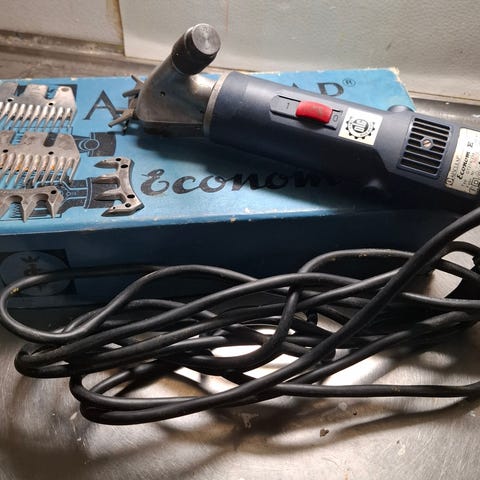 Horner Shearing Zipper II klippmaskin för fårklippning. Inkluderar 2 kombinerade kammar och klippare, skruvmejsel för klippning samt en flaska klippsmörjolja. Levereras i ett bärbart aluminiumfodral med skuminsats för säker förvaring och transport. Aldrig använd.