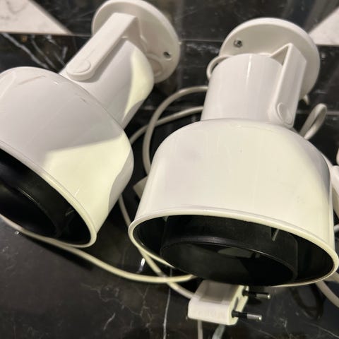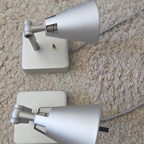 2 st sänglampor i rostfritt stål. Använda men i bra skick.