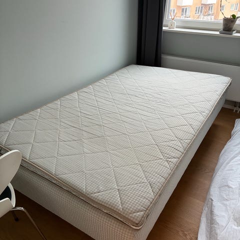 Tussöy bäddmadrass i minnesskum, 105 cm, från IKEA. Endast använd ett fåtal gånger på en gästsäng. IKEA har ersatt Tussöy med Nordberget, men de är likvärdiga. Jag har två stycken och priset är 600 kr styck.
