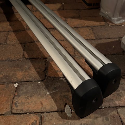 Takräcken använda till takbox färre än tio gånger. Passar till BMW X3 årsmodell 2019.