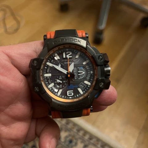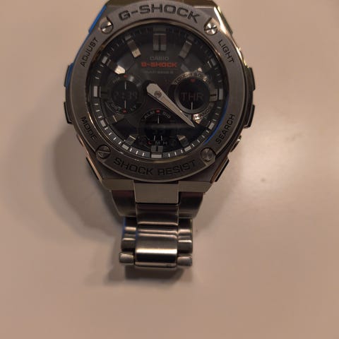 Säljer en Casio G-Shock i mycket gott skick. Robust analog/digital modell med Tough Solar och Multi Band 6 (radiostyrd tid) – extremt pålitlig och byggd för att tåla i princip allt.