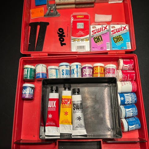 Stora valla boxen med 19 st olika vallor, tuber, vallajärn tillbehör mm från Swix.