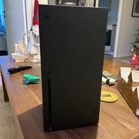 Säljer nu mitt Xbox Series X spelkonsol med tillbehör inklusive handkontroll och originalförpackning. Enhet avsedd för spel på Xbox-plattformen.