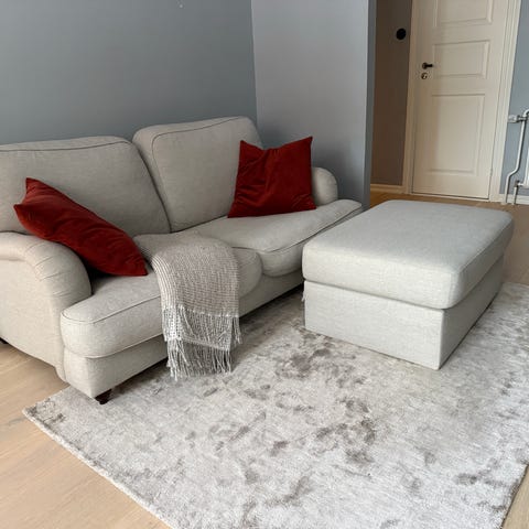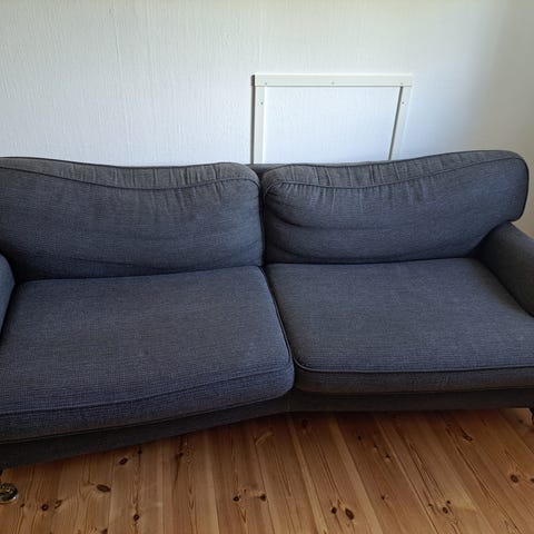 Fantastiskt skön att både sitta och ligga i så om du är händig eller vill lämna in och få den omklädd så har du hittat ett guldkorn! Lösa dynor med avtagbar klädsel, kemtvätt.
