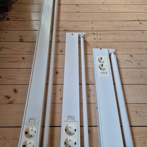 2 st. Malmbergs Loka bänkarmatur LED-R, ca 60 cm med dubbla eluttag i varje.