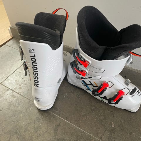 Väl fungerande juniorpjäxor. 25,5 cm innermått, 29,5 yttermått.
