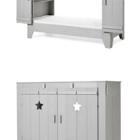 Barnsäng med gardiner och madrass