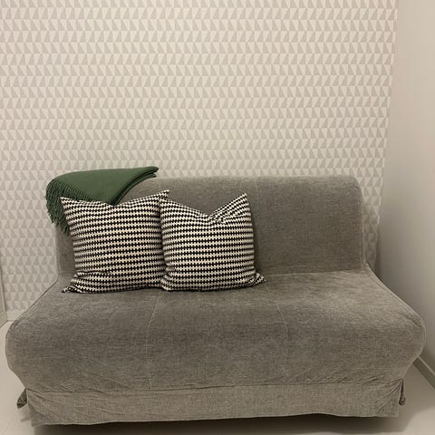 En orange bäddsoffa från IKEA med förvaring. Soffan är bekväm och praktisk. Den har förvaring i schäslongen och soffa är i mycket bra skick.