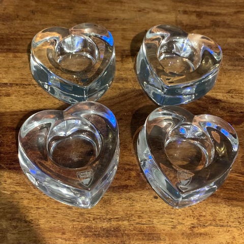 Hjärtformad ljushållare från Orrefors, lite repig på undersidan men inget som stör eller synd när man har ett värmeljus i.