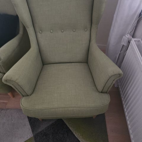 En fåtölj från IKEA ur serien Strandmon som snart utgår ur deras sortiment.