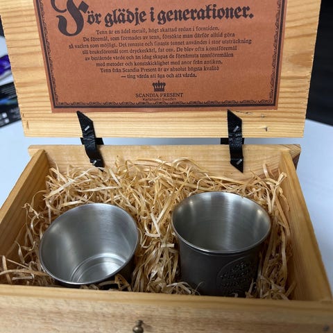 Vasen Flask från Svenskt tenn. Begagnat skick med lite fläckar på mässingen som behöver putsas och även lite vit beläggning på glaset. Superfin ändå. Nypris 1200kr.