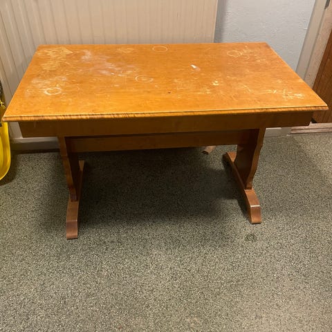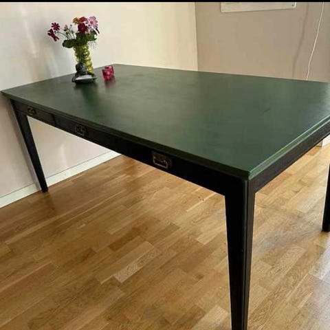 Bordet är stadigt, rent och väl omhändertaget, utan större skador. Perfekt som matbord eller arbetsbord.