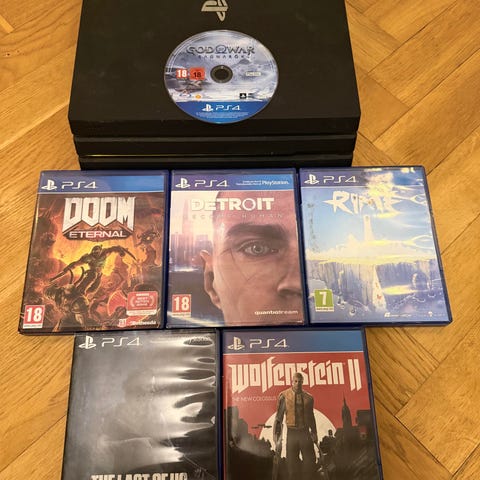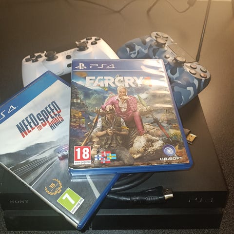 Ps4 pro 1 tb, två handkontroller. Battlefield 1, the crew 2, wreckfest, steep, nba 2k16 och dirt rally.
