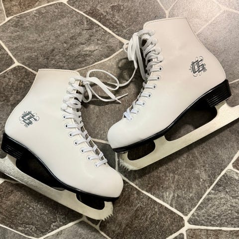 CCM Pirouette konståkningsskridskor i storlek 35. Skridskorna är vita och avsedda för övriga skridskosporter. De har en klassisk design med snörning och metallblad. Endast använda en gång, som nya!