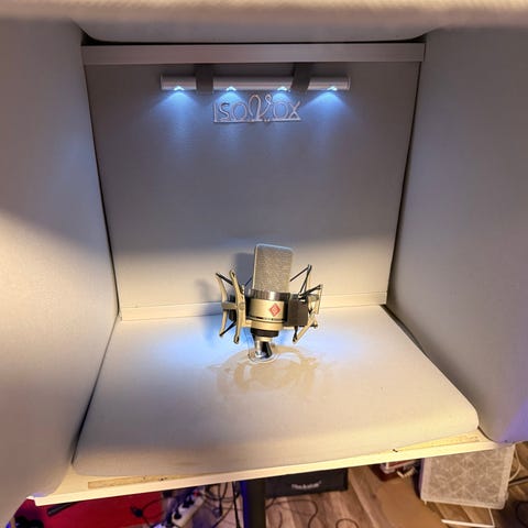 Lukustik Vocal Head Booth Stand Bundle med stativ och ljudisolerande paneler för akustisk inspelning.