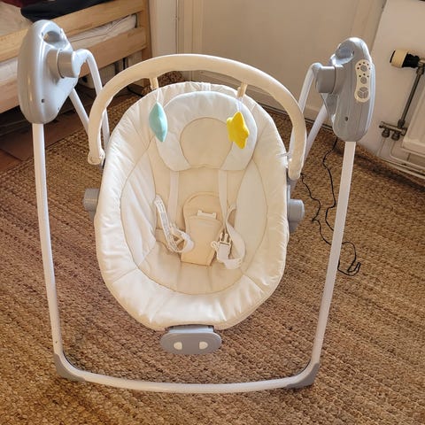 Fint skick. Grå basfärg. Mjukt material, fina detaljer. Den här är en elektrisk Vagga (utan sladd med batteri).