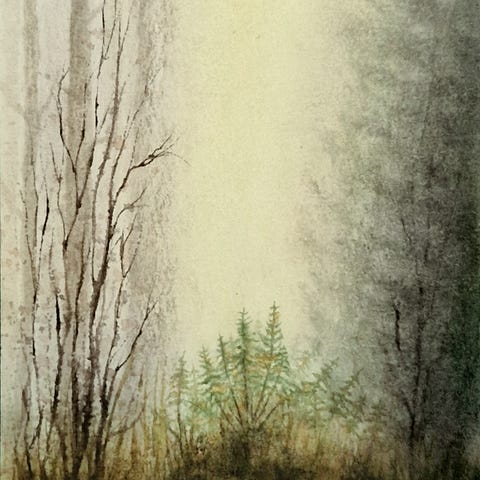 Den är målad på 300g bomullspapper och är 11.5×18 cm.