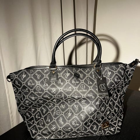 Lycke Oslo tygväska, weekend bag i svart färg med beige handtag. Bruna lädereetaljer.