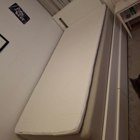Ikea sängram med fyra rejäla förvaringslådor. Komplett med två 90x200 madrasser (ena medium och den andra fast) inkl bäddmadrasser med memoryskum. Begagnat skick, dvs lite färgskav här och där. Ramen ca 10 år, madrasserna ett par år nyare.