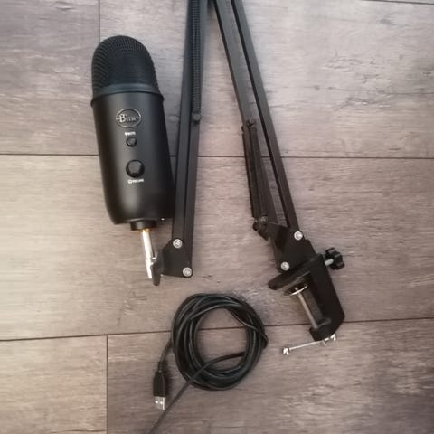 Blue yeti mikrofon, följer med popskydd, kan tas av om önskat.