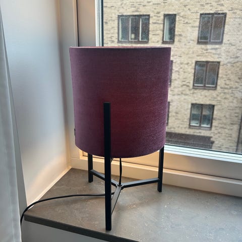 Svart bordslampa tillverkad i metall med en konisk bas och en rund skärm. Passar som belysning på bord eller skrivbord. Ger ett mysigt sken. Som ny.