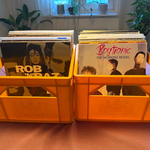 - Bangles (med sångerskan Susanna Hoffs), "Different light" (inkl 'Manic monday' skriven av Prince, 'Walk like an egyptian', 'If she knew what she wants'), 1985, ganska fin vinyl men spårhoppar på minst ett par ställen på sida 1 pga av tunn lång repa, omslag bra/fint, pris-etikett på baksida