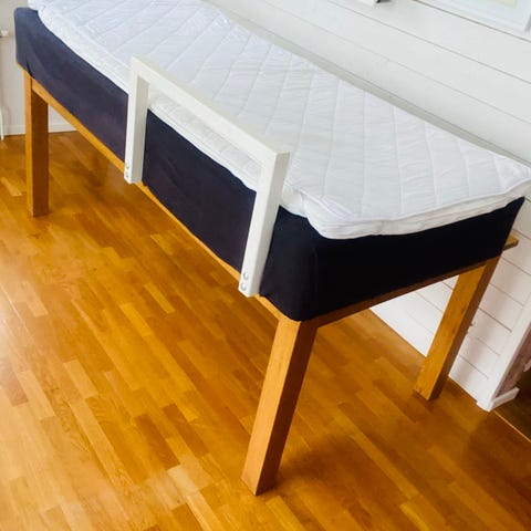 Sängen är i helt och bruksgott skick. Perfekt som gästsäng, till studentrummet eller som extrasäng.