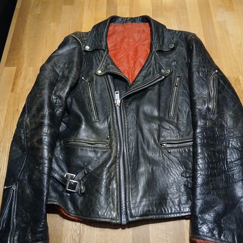 Mc jacka storlek 40. Skinn halvarssons slutar vid midjan. Passar liten person. Armskydd och uttagbart innerväst.