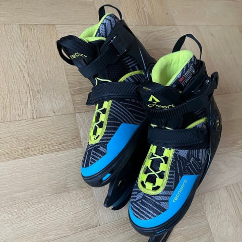 Skridskorna har justerbart spänne och snörning för anpassad passform.