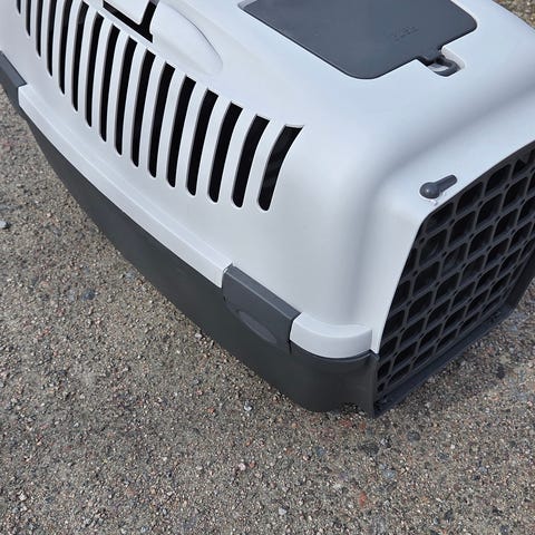 Två hopfällbara transportburar för husdjur i turkos och grå färg. Tillverkad i slitstarkt material med nätfönster för ventilation. Lämplig för transport och tillfälligt boende för husdjur. En för 300kr. Båda för 500kr