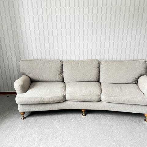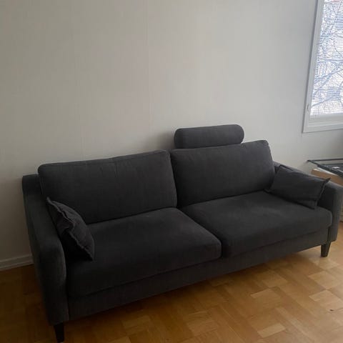 Soffan är ca 3 år gammal och är i fint skick, divandelen är lite nedsutten åt ena hållet men annars är den inte så värst nedsutten på de andra sittdelarna. Finns inga revor på soffan men finns en superliten prick på ena hörnet av armstödet som inte verkar gå bort (kan skicka bild på de vid frågan)