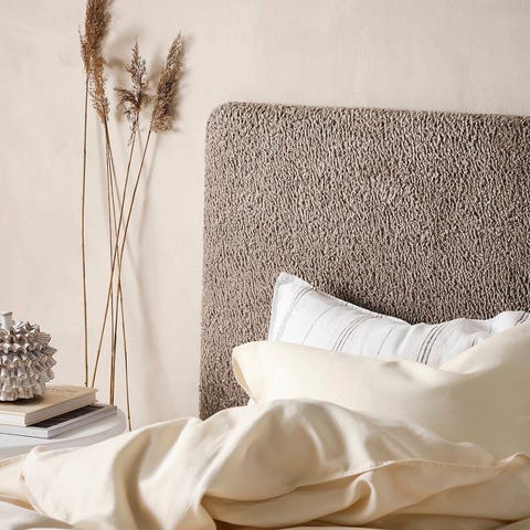 Sängkappa Miramar från HIMLA i linne/bomullstyg, med mycket struktur och rustik känsla.