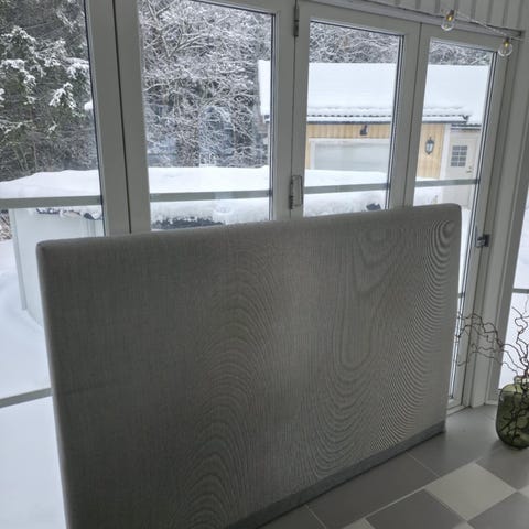 Säljer en elegant Bornö sänggavel från Carpe Diem Beds i grå färg.