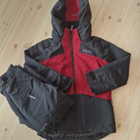 EQPE skidställ med fodrad skidjacka och skidbyxor i mycket fint skick i storlek 158-164. Använd på loven 1 säsong men tyvärr har sonen vuxit ur den. Han tyckte väldigt mycket om detta ställ. Grått med blå detaljer. Snölås på jacka och byxor. Liftkortsficka, muddar på ärmarna, justerbar midja på byxorna. Förstärkt nedre del på byxorna. Löstagbar huva på jackan. Nypris var 2200:-