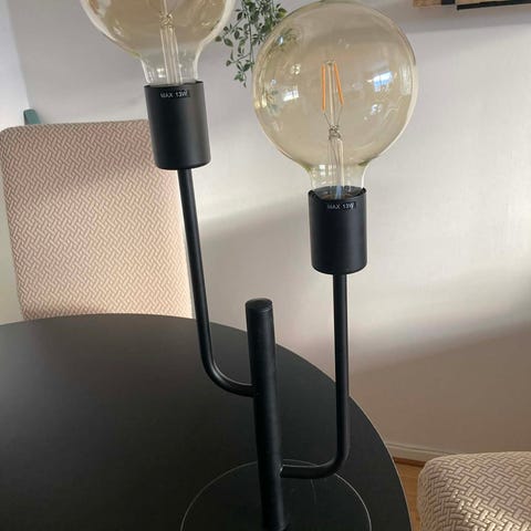 IKEA bordslampa i ljusrosa färg med justerbar arm. Lampan är designad för att användas som skrivbords- eller läslampa och har en sladd med strömbrytare.