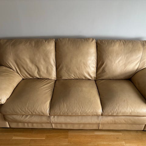 3-sits beige skinnsoffa