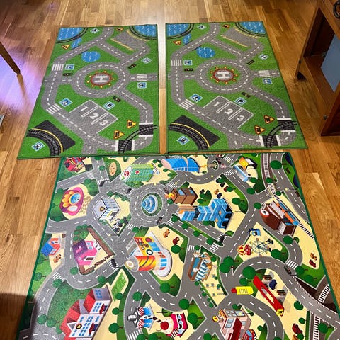 Säljer min lekmatta i skumplast. Den är extra tjock (15 mm), mjuk och smidig att vika ihop.