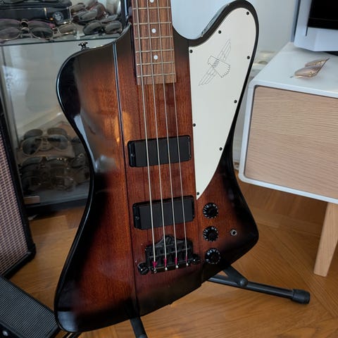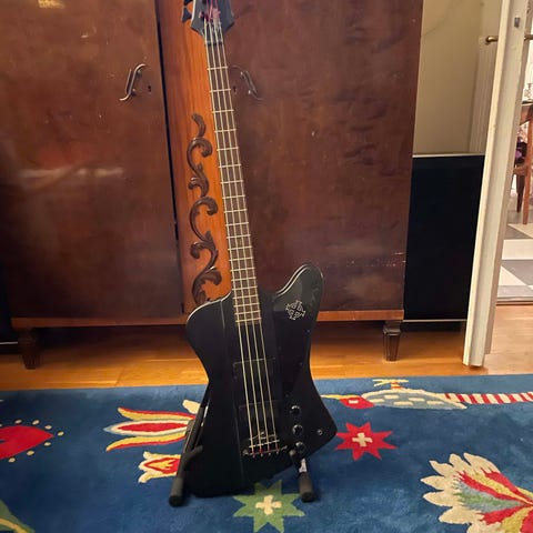 Svart Epiphone EB-3 basgitarr. Klassisk design med klassiskt sound. Long scale.