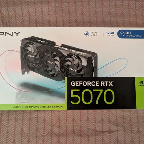 Säljer ett GIGABYTE GeForce RTX 5070 Ti EAGLE OC - 16GB i mycket bra skick! Inköpt 2025-03-26 så det har fortfarande garanti (kvitto finns). INTE använt till mining eller dylikt utan endast spelande.