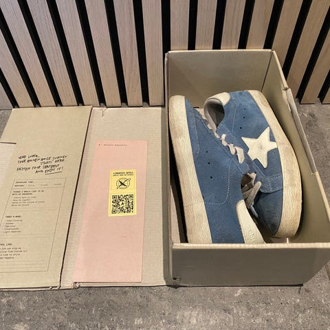 Säljer mina Golden Goose VSTAR2 sneakers i beige färg, storlek 42. Skorna är köpta 2024 via GOAT men har tyvärr inte kommit till användning. Vill gärna ge dom ett liv!