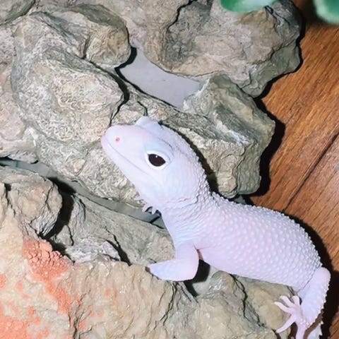 Hon är helt frisk, äter väldigt bra, bajsar och ömsar som hon ska.