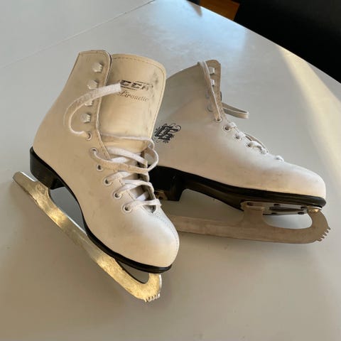 Storlek 37: Fina, endast något litet märke på utsidan. Väldigt lite använda. Skenan helt rostfri och i väldigt fint skick.