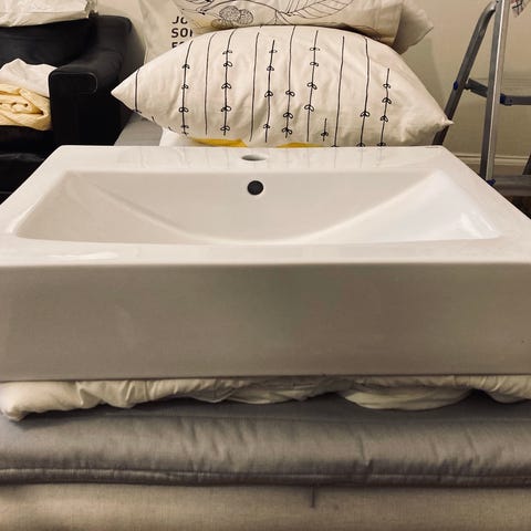 Två vita runda HAFA Fine tvättställ i porslin