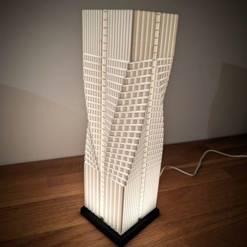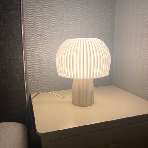 En bordslampa som ger ett behagligt ljus. Perfekt för sängbordet eller skrivbordet. Lampan är 3D-printad i PLA, ett lätt och miljövänligt material.
