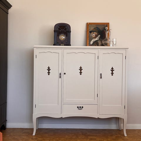 Pga platsbrist säljer vi detta kinaskåp som målats om från rött till vitt. Rymligt med flera hyllplan, lådor och ett lönnfack i botten. Mått: Höjd 175cm Bredd 105cm Djup 65cm