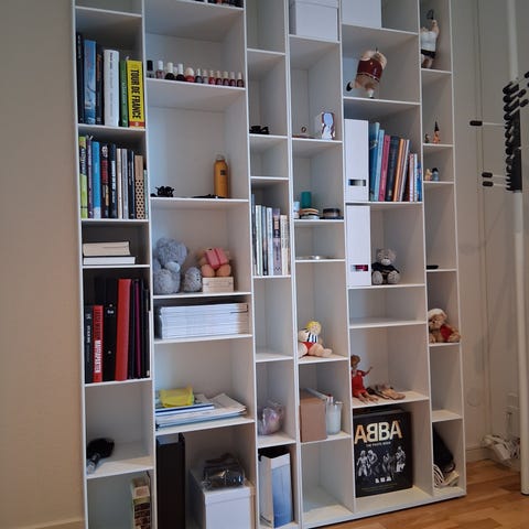Mio bokhylla med ram i metall och hyllplan i glas. Fyra hyllplan för förvaring av böcker och dekorativa föremål. Passar för användning i vardagsrum, kontor eller andra utrymmen där extra förvaring behövs.
