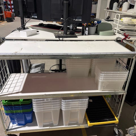 - Plockvagn med 6st hyllplan som vi använt som 30-plock, alltså en vagn som plockar 30st order (Se även bild 2)